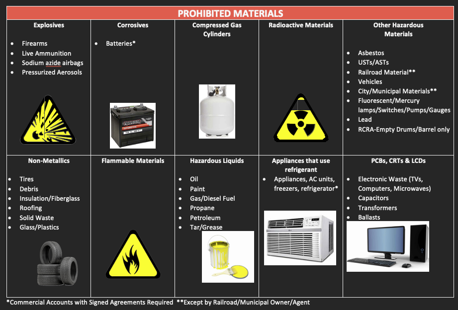 Acceptance of your materials is strictly the determination of the Yard Inspection Personnel. Materials containing any listed items will subject your load to rejection.